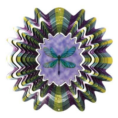 This designer animated dragonfly wind spinner is made of 20 gauge steel and sparkling powder coated for durability and weather resistance, this beautiful design mesmerizes with an alluring holographic dragonfly for all to enjoy as it spins in a light breeze. A great item for decor outside as well as inside. A nice addition to any lawn or garden. It is eye-catching and it has purple, yellow and blue color. Measures 25 centimeter..../ Iron Stop DA17010 Designer Animated Dragonfly Wind Spinner / Sculpture Home